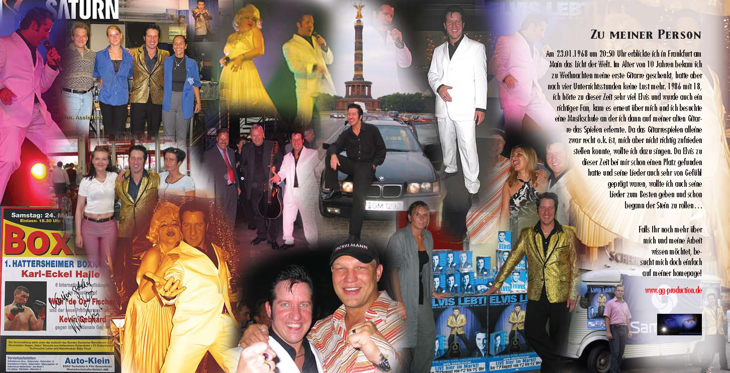 Hier vielleicht mal eine kurze Biographie zu meiner Person. Am 23.01.1968  um 20:50 Uhr erblickte ich in Frankfurt am Main das Licht der Welt. Im Alter von 10 Jahren bekam ich zu Weihnachten meine erste Gitarre geschenkt, hatte aber nach vier Unterrichtsstunden keine Lust mehr da es doch mit sehr viel üben und Zeit verbunden war, und ich lieber meine Zeit mit anderen Dingen verbrachte. 1986 mit 18, ich hörte zu dieser Zeit sehr viel Elvis und wurde auch ein richtiger  Fan, kam es erneut über mich und ich besuchte eine Musikschule an der ich dann auf meiner alten Gitarre das spielen erlernte. Da das Gitarre spielen alleine zwar recht hübsch ist mich aber nicht richtig zufrieden stellen konnte (bin nun schließlich kein Virtuose) wollte ich dazu singen. Im Unterricht selbst wurden dann schon eher mal Songs wie "über den Wolken" gelernt, die für mich anfänglich auch mehr gesprochen als gesungen waren. Da Elvis zu dieser Zeit bei mir schon einen Platz gefunden hatte und seine Lieder auch sehr von Gefühl geprägt waren wollte ich auch seine Lieder zum Besten geben und schon begann der Stein zu rollen...